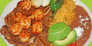 Carne Asada, Chorizo, Camarones, Pechuga, Queso y Salsa.