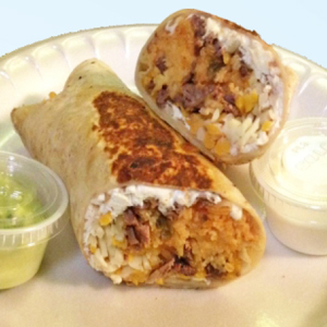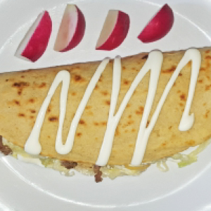 $8Flour Tortilla filled with meat, melted cheese, lettuce, onions, cream.
